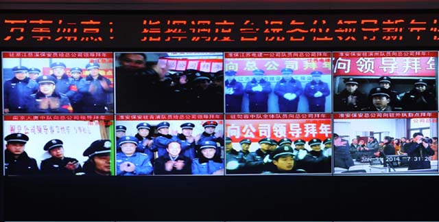 2014年元月31日大年初一早晨7時(shí)28分,公司總經(jīng)理婁伯翱、副總經(jīng)理王克、徐文剛以及公司黨總支委員、公司各部負(fù)責(zé)人一起慰問(wèn)了執(zhí)行任務(wù)的武裝押運(yùn)員,婁伯翱總經(jīng)理代表黨總支向大家拜年并致以節(jié)日的問(wèn)候和祝福。隨后,公司領(lǐng)導(dǎo)來(lái)到公司指揮調(diào)度中心,通過(guò)互聯(lián)網(wǎng)視頻連線,代表總公司黨總支慰問(wèn)了駐外分公司駐浙江慈溪、上海青清、山東濱州、南京大唐、鎮(zhèn)江等地駐外保安隊(duì)伍,向他們致以新春的祝福!