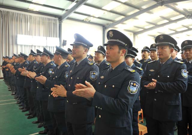 會議內(nèi)容和安排一切從簡,有四項議程,一是播放年度總結(jié)PPT文件,二是宣讀表彰人員名單,三是部門遞交責(zé)任狀,最后總經(jīng)理婁伯翱講話。押運大隊市區(qū)押運員和駐各縣隊員代表;機關(guān)各部門人員以及各分公司員工代表近700人參加了會議。