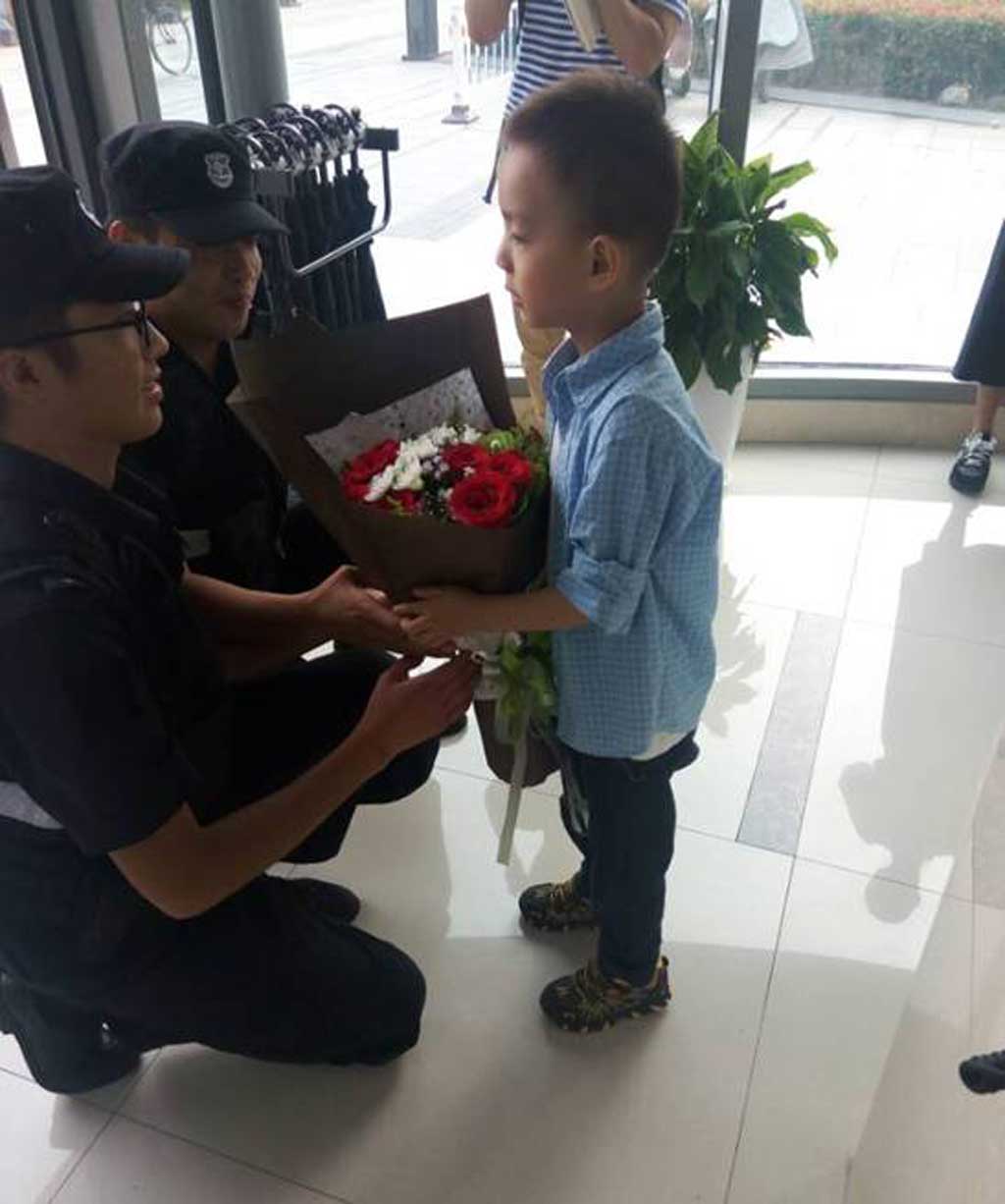 2016年10月5日下午在萬達(dá)廣場警務(wù)工作服務(wù)站內(nèi),在淮安日報(bào)社、淮安電視臺(tái)等記者的“咔咔”攝像聲中,談亦童小朋友手捧鮮花來到隊(duì)員胡繼田與孫慧棟兩名隊(duì)員面前,連聲說“謝謝叔叔!謝謝叔叔!”原來是10月4號(hào)晚8時(shí)左右,隊(duì)員胡繼田與孫慧棟一組正常巡邏到A區(qū)域時(shí),發(fā)現(xiàn)車庫處,一女同志懷抱一小孩,吃力地往前跑,邊跑邊哭。這時(shí)巡邏隊(duì)員發(fā)現(xiàn),立即沖上前,問明情況后,抱過小孩直奔附近中山醫(yī)院,沒有找值班醫(yī)生,后立馬往八二醫(yī)院跑。聞?dòng)嵹s來的巡邏車,帶上他們一同趕往八二醫(yī)院。在路途中孩子的媽媽童女士,急的失聲痛哭。原來童女士帶著孩子逛商城時(shí),孩子吃了牛皮糖不小心堵住氣管,孩子一度臉色蒼白,痛苦的呻吟。在往醫(yī)院奔趕得途中,由于顛簸,將牛皮糖顛下去了。到八二醫(yī)院,醫(yī)生檢查后確認(rèn)化險(xiǎn)為夷。醫(yī)生說如果不是保安及時(shí)處置,孩子很可能就窒息了,十分危險(xiǎn)。于是出現(xiàn)開頭的一幕。萬達(dá)警務(wù)工作服務(wù)站是淮安市公安局剛剛組建的新的惠民服務(wù),總公司派駐的50名輔警人員。自9月24日組建以來,傳承了淮安保安隊(duì)伍優(yōu)良品德,嚴(yán)謹(jǐn)?shù)墓ぷ髯黠L(fēng),過硬的素質(zhì),得到清河公安分局領(lǐng)導(dǎo)的高度贊揚(yáng),得到社會(huì)廣泛認(rèn)可!引起淮安電視臺(tái)以及淮安日報(bào)等媒體的關(guān)注和贊美!