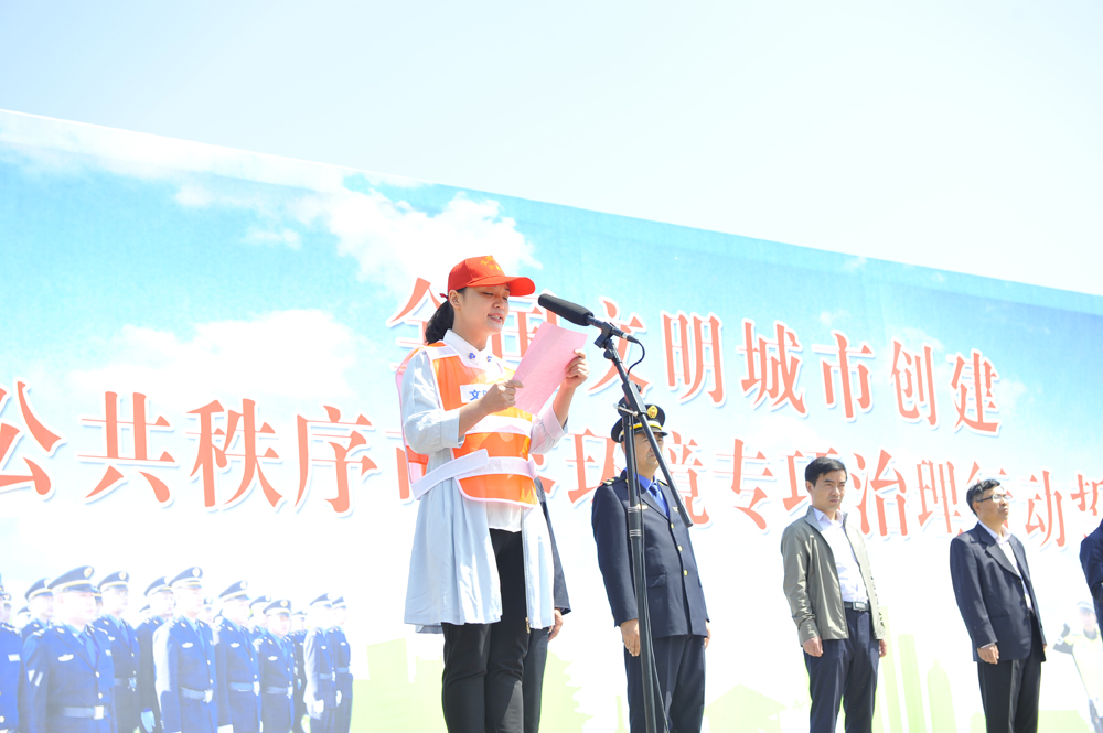 總公司組織200人組成文明志愿者方陣參與本次活動,行政管理中心綜合管理部副主任黃華作為文明交通志愿者代表發(fā)言,宣讀行動倡議書,倡導大家從現(xiàn)在、自身和點滴做起,將淮安建設成一座崇德向善、文化厚重、和諧宜居的文明城市。