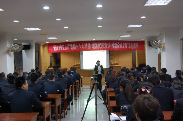 晉江 市保安服務公司舉辦“貫徹十八大精神•增強憂患意識•推動企業(yè)發(fā)展”專題講…