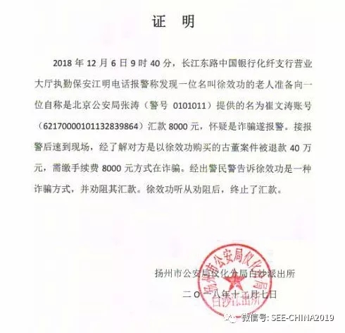 該老年客戶仍心存僥幸,遲疑不決。于是華鼎保安員江明將該老年客戶帶至該行工作人員丁雯雯處一起與其交談,并進行進一步防詐騙知識宣講,同事向110報警。110很快來該行了解情況后,告知是電信詐騙,不要匯款。最終該老年客戶沒有匯款。這是華鼎保安員江明今年第二次堵截電信詐騙,他對工作認真負責的態(tài)度受到了該行與廣大客戶的一致稱贊。