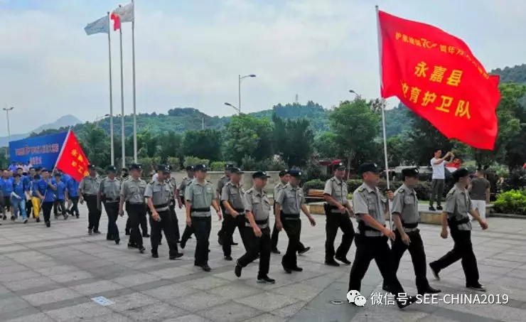 由永嘉縣委政法委和縣公安局主辦,多部門參加的“護(hù)航建國70周年萬人百日大巡防活動”,于2019年7月1日上午在縣城體育館廣場啟動。永嘉縣保安公司教育安保大隊精心組織20人的教育護(hù)衛(wèi)隊代表縣保安服務(wù)有限公司參加此次活動。