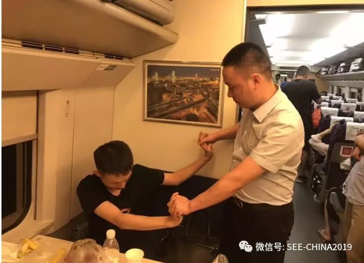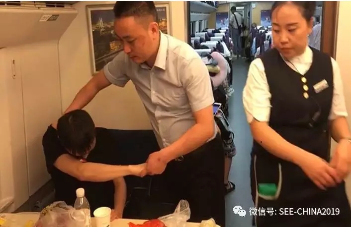 昨晚從福州南站開往溫州南站的動車D3212組列車上正在緊急廣播一位病人突發(fā)心臟病抽筋,臉色蒼白心悶疼痛,動車組乘務(wù)員廣播了3次尋救醫(yī)務(wù)乘客或其他乘客參與臨時急救,時間過去了十多分鐘,仍無一人相助,就在這個心急如焚的時刻,一位臨危不懼“見義勇為”的好人挺身而出,在短短的幾分鐘穴位按摩活動,患者已奇跡般的反過神來,如果沒有及時處理很有可能會導(dǎo)致心臟驟停的嚴(yán)重后果。當(dāng)列車長、患者夫婦及車廂內(nèi)所有人看到這有驚無險(xiǎn)的感人一幕都高興不已,大家紛紛拍手稱道。