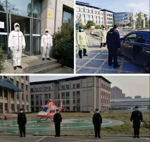 他們不畏艱險,把守著醫(yī)院的出入口,奮戰(zhàn)在發(fā)熱門診、醫(yī)生專用通道、病患者通道等醫(yī)院的第一線;他們協(xié)助進行體溫監(jiān)測,轉(zhuǎn)運和分發(fā)防各類疫物資,深入重癥病房樓層轉(zhuǎn)運病床;他們時刻守護白衣天使身邊,守護國家醫(yī)療隊,護衛(wèi)院士安全;他們幫助平復(fù)病患情緒,主動調(diào)解各類糾紛,維持醫(yī)院秩序……