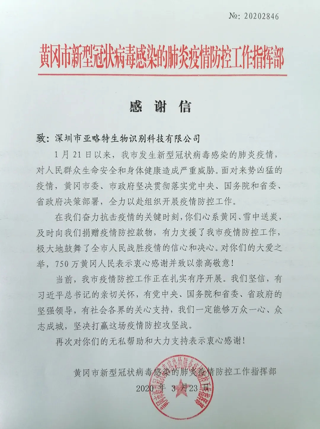 自新冠肺炎疫情開始以來,全國各地積極募資籌款、捐獻物資共抗疫情,支持湖北等地疫情防控。作為中國的創(chuàng)新之都,深圳涌現(xiàn)出一批高科技企業(yè),運用科技手段,努力打好疫情防控阻擊戰(zhàn)。深圳市亞略特生物識別科技有限公司就是這樣一家企業(yè),在湖北疫情防控關(guān)鍵時刻,用行動馳援湖北,分別向黃岡、孝感、咸寧三地各捐贈一批AI人臉識別測溫智能終端,支持當(dāng)?shù)匾咔榫珳?zhǔn)防控。