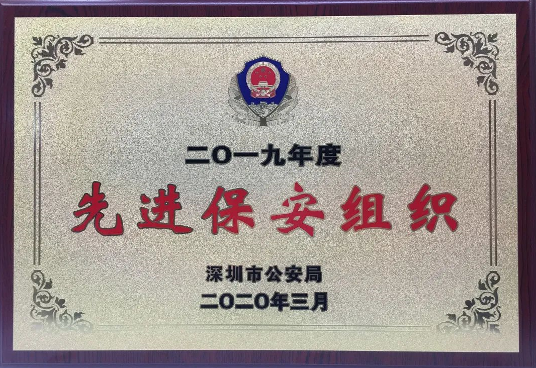 “先進保安組織”榮譽牌匾
