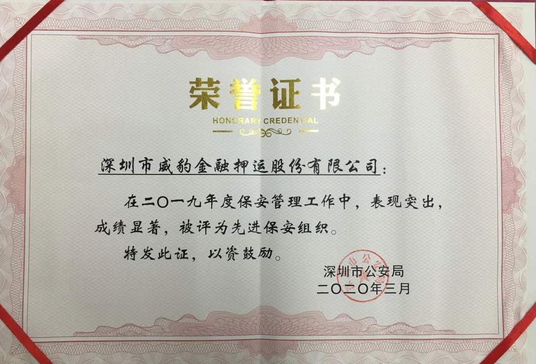 “先進保安組織”榮譽證書